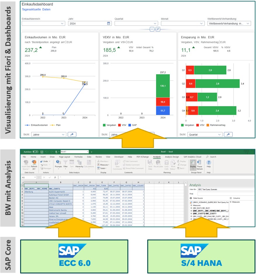 - Einheitliches Reporting über BW, Dashboards, Fiori und Analysis for Office
